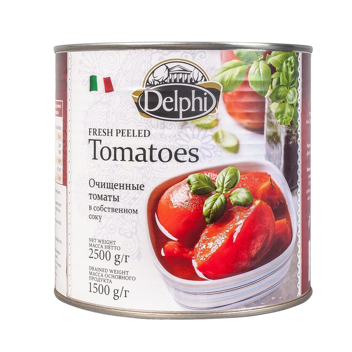 Томаты очищенные в собственном соку DELPHI 2500г ж/б
