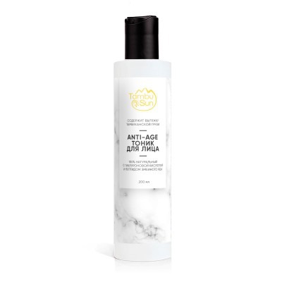 Тоник Anti-Age обеспечивает эффективное очищение, увлажнение и омоложение кожи. Благодаря содержанию гиалуроновой кислоты, тоник справляется с возрастными изменениями и поддерживает молодость и упругость кожи. Глубокое очищение: удаляет остатки макияжа, себум и другие загрязнения, которые могут вызвать воспаление и раздражение на коже. Увлажнение: гиалуроновая кислота и экстракты алоэ, мелиссы и витамина Е удерживают влагу в клетках, предотвращая сухость и шелушение кожи, стимулируют синтез коллагена, что помогает улучшить упругость и эластичность кожи. Омоложение: пептид змеиного яда замедляет процессы старения, уменьшая глубину морщин и улучшая тонус кожи. Вытяжка тамбуканской грязи в составе способствует регенерации клеток и восстановлению структуры кожи. Защита от свободных радикалов: экстракт зелёного чая и гиалуроновая кислота эффективно защищают кожу от негативного воздействия окружающей среды и замедляют процессы окисления. Улучшение микроциркуляции: масляная вытяжка тамбуканской грязи в сочетании с витаминами Е, С и В3 стимулирует кровообращение, обеспечивает ровный цвет лица и здоровое сияние кожи.