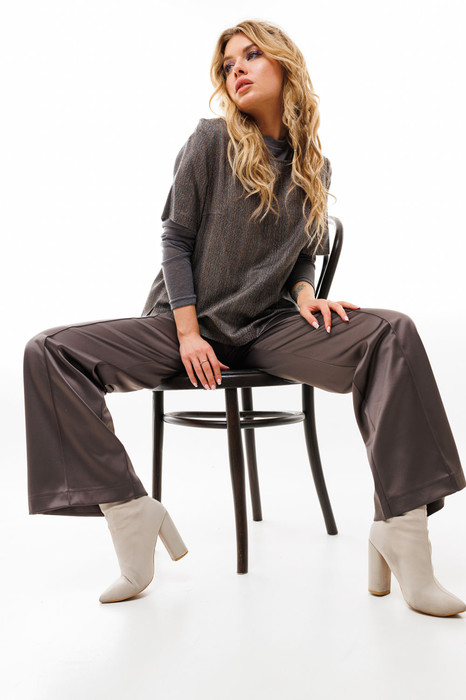 Тепленький топ с очень красивой ткани, с очень нежной, ненавязчивой тончайшей блестящей ниточной. Благородный оттенок холодного шоколада. Согреет и украсит в прохладные дни.