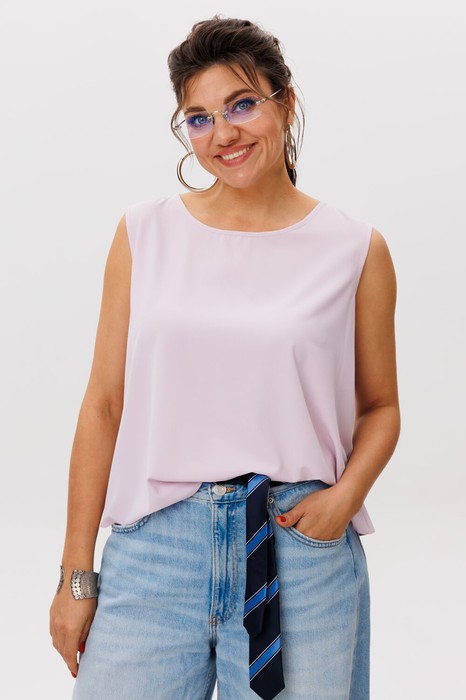Универсальность модели позволяет создавать множество стильных комбинаций — её можно носить самостоятельно, подчеркнув лаконичной юбкой или брюками, или же сочетать с жакетами и кардиганами для более строгого ансамбля. Богатая палитра оттенков дарит свободу для экспериментов, делая этот топ базовой, но в то же время выразительной деталью гардероба.