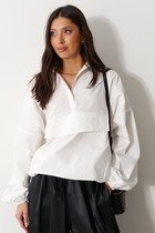 Vilatte Укороченная блузка из эластичного хлопка D29.322 белый-фисташковый