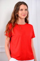 Базовый женский топ свободного силуэта с фигурными  линиями по переду и небольшой сборкой по бретелям.