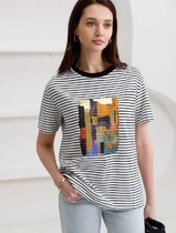 Свободная футболка в полоску с принтом из премиального хлопка с эластаном