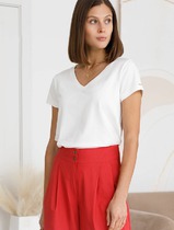 Vilatte Базовая футболка из премиального хлопка с V образным вырезом D49.156 бел