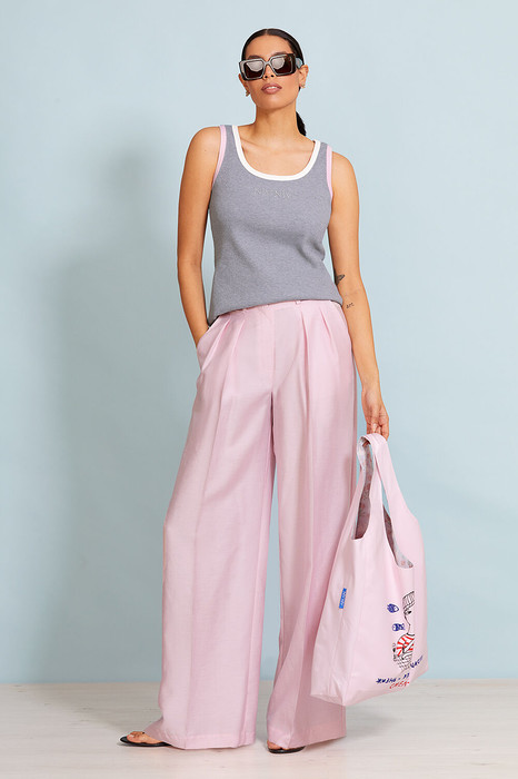 Топ выполнен из трикотажного полотна в рубчик. Изделие приталенное. Горловина круглая. Линия плеча зауженная. На полочке термоапликация. Горловина и пройма обработаны отделочной тканью