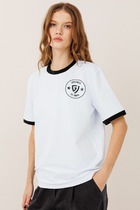 21.04 Vilatte Футболка облегающая из хлопка в рубчик с V вырезом и матовым покры
