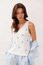 Топ эффектно смотрится благодаря вязке «английская резинка» и отлично пойдет для создания стильных образов.