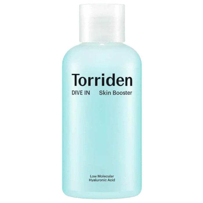 Гиалуроновый бустер для интенсивного увлажнения Torriden DIVE IN Low Molecular Hyaluronic Acid Skin Booster в кратчайшие сроки восполняет недостаток влаги и восстанавливает кожу после умывания. Эффективно борется с обезвоженностью, стянутостью, шелушениями и сухими морщинками. Нормализует гидролипидный баланс и смягчает огрубевшие участки эпидермиса. Ключевой компонент средства — комплекс из 5 видов гиалуроновой кислоты разной молекулярной массы, которые способны проникать глубоко в роговой слой кожи, работают как на поверхности, так и в клетках. Комплекс создаёт невидимый барьер, препятствующий испарению влаги, улучшает структуру, способствует регенерации клеток, сокращает мелкие морщинки, делает кожу гладкой и нежной. Бустер активно насыщает кожу влагой и оказывает пролонгированное увлажняющее действие. Выполняет роль проводника, облегчая транспортировку активов в более глубокие слои эпидермиса. Укрепляет защитные свойства и отвечает за целостность липидной мантии. Нейтральный pH показатель и веганский состав позволяют использовать продукт даже на чувствительной и атопичной коже. Подходит для сухой, нормальной и чувствительной кожи.Способ применения: нанесите необходимое количества бустера на очищенную кожу лёгкими похлопывающими движениями. Объём: 200 мл