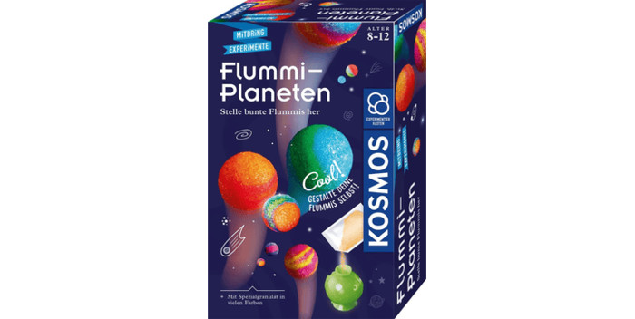Как здорово! Марс, Юпитер, Венера, Сатурн — с этими яркими прыгучими планетами дети создают свою первую прыгучую вселенную. Инструкции показывают им шаг за шагом, как сделать прыгучие мячики. Быстро насыпьте разноцветные гранулы в специальные формочки для планет, погрузите их в воду на несколько минут, выньте и дайте немного высохнуть.