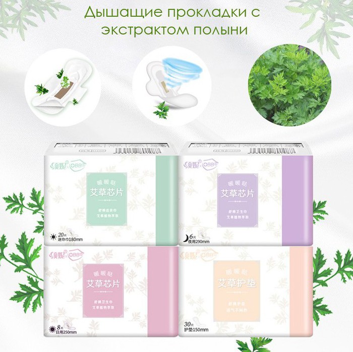 Совместные покупки Симферополь Косметика и парфюмерия Прочий макияж — Травяные дышащие прокладки с экстрактом полыни 6 штук OBB, Размер 29 см. (Впитыв