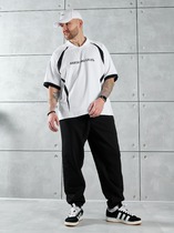 Мужское трико из футера с лайкрой. Две расцветки — черная и индиго. Пояс на резинке, по бокам карманы, небольшой принт в виде надписи, прямой покрой