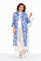 Туника из кулирки. Короткая молния у ворота. Рукава отсутствуют, общая длина до середины бедра. Принт в виде надписи Париж и Лондон, белые декоративные полоски. Несколько расцветок — голубая, горчичная, зеленая, розовая. Размеры от 42 до 52. Имеется возможность розничного приобретения данного товара.