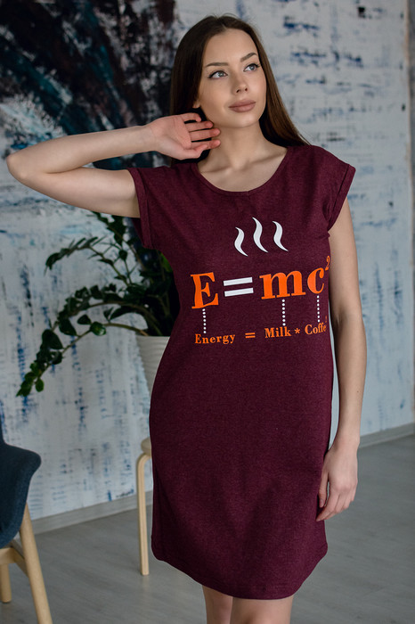 Туника для дома слегка приталенного силуэта с внутренними карманами в боковых швах. На изделии изображена оригинальная печать, где формула энергии обозначает молоко и кофе в квадрате. Очень удобный крой со спущенной проймой. Благодаря полиэстеру в составе, изделие хорошо держит форму.