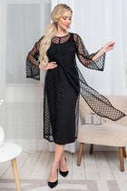 Эффектная туника. На полочке вставке из ткани контрастного цвета с люрексом буквой "Т". По бокам разрезы, рукав 3/4