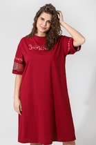 Туника из кулирки с лайкрой. Длина чуть выше коленей, рукава короткие. На груди принт в виде милых котят, узор из звездочек. Может быть парой детской тунике Каникулы (продается отдельно). Размеры от 44 до 54. Есть возможность заказать в розницу.
