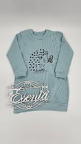 Туника свободного кроя с втачными длинными рукавами. На полочке есть принт, спинка состоит из 2-ух деталей, нижняя представлена 2-мя ярусами рюш из текстильного полотна. Горловина круглая и обработана притачной бейкой с декоративным кантом в шве.