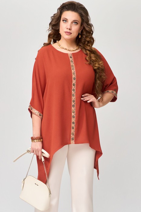 Туника "Удеса" оверсайз выполнена из текстильной ткани без подкладки, ткань легкая, стрейч и очень практичная в носке. Рукав цельнокроеный, горловина обработана обтачкой, обтачка закреплена отделочной строчкой. Низ изделия обработан швом в подгибку, по центру полочки нашита тесьма  (монетки на сетке), низ рукава тоже обработан декоративной тесьмой.