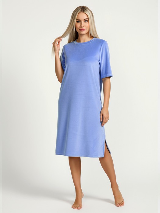Туника женская из гладкокрашенного полотна «велюр стрейч», свободного покроя, с короткими втачными рукавами, горловиной овальной формы, обработанной втачной планкой и разрезами в боковых швах.