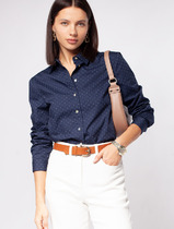 14.04 Vilatte Блузка прямого силуэта из ткани с принтом D29.228 т.синий-белый