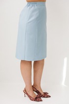 Юбка в нежном голубом оттенке «голубка» становится естественным продолжением образа, создавая ощущение лёгкости, женственности и утончённой собранности. Аккуратные рельефы по переду формируют изящный силуэт, мягко подчеркивая фигуру и добавляя образу стройности и элегантности. Притачной пояс с деликатной резинкой по бокам обеспечивает комфортную посадку, позволяя чувствовать себя уверенно и свободно в течение всего дня, а подкладка делает юбку особенно приятной к телу и завершённой по ощущению.