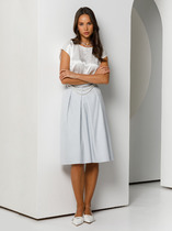 Юбка в длине миди, выполнена из эластичной синтетичекой кожи. Застёжка - гульфик с молнией, пуговица. По центру переда обработан разрез. По задним половинам настрочены накладные карманы. По переду обработаны втачные карманы.