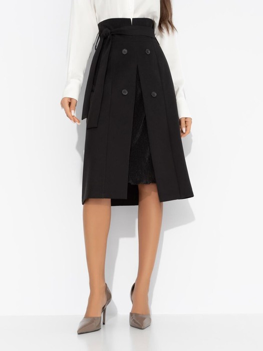 Взлет твоей популярности не остался незамеченным. Вспышки камер, таинственные улыбки и звонки с неизвестных номеров. Ты остаешься верна себе и своему стилю – полна достоинства и элегантности. Юбка ЧАРУТТИ подчеркивает твой статус. Ты не следуешь правилам, ты их переписываешь. Юбка в длине миди трапециевидного силуэта. Акцентный крой – имитация двух слоев в комбинации двух видов ткани. Посадка высокая на талии. Скрытая молния по спинке изделия. Есть пояс в тон изделия.