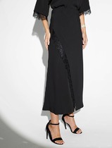 Vilatte Юбка миди на запАх из креп-шифона с кружевом D26.206 черный
