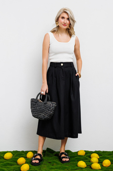 Юбка миди со складками. По переднему и заднему полотнищу расположены складки. Юбку можно носить с блузкой или топом.