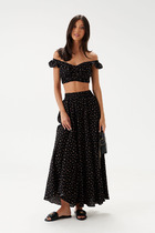 Расклешенная юбка из пайеток на сетке на притачном поясе с резинкой и шлевками.