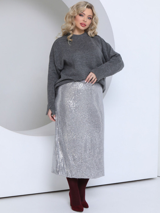 Расклешенная юбка из пайеток на сетке на притачном поясе с резинкой и шлевками.
