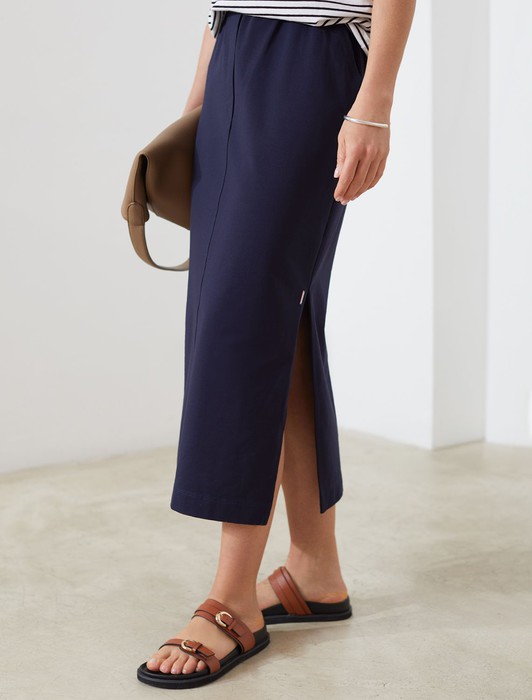 Юбка миди на резинке с разрезами из футера двухнитки с эластаном