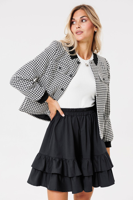 Юбка женская текстильная с воланами расширенная к низу. Верх юбки обработан поясом с резинкой.