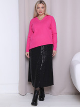 Юбка с имитацией запаха с темными китами, выполненными техникой ручной набойки.