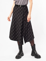 Юбка миди из джинсовой ткани. Верх на поясе со шлевками. Застежка по переду на кнопки. В боковых швах карманы. По переду кокетка и планка, переходящая в разрез. По спинке кокетка и карманы с клапаном. На клапане застежка на кнопку. Длина 85 см.
