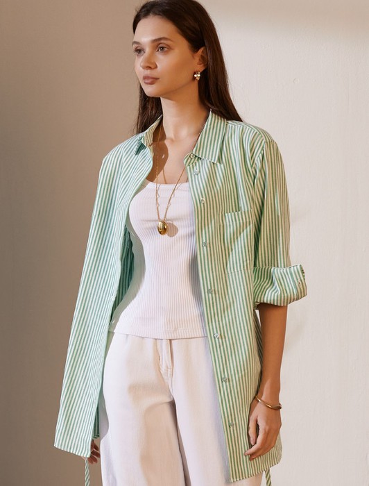 Удлиненная блузка с поясом в тонкую полоску из хлопка