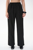 Брючины слегка заужены к низу, на щиколотках — плотные манжеты, благодаря которым обладательницам этих брюк не страшны ни снег, не холодный ветер. Пояс -резинка, внутри имеется шнурок для регулировки талии, два боковых кармана на молнии.