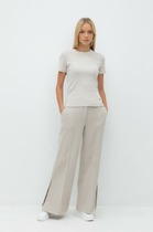 Брючины слегка заужены к низу, на щиколотках — плотные манжеты, благодаря которым обладательницам этих брюк не страшны ни снег, не холодный ветер. Пояс -резинка, внутри имеется шнурок для регулировки талии, два боковых кармана на молнии.