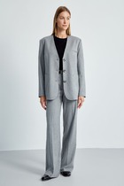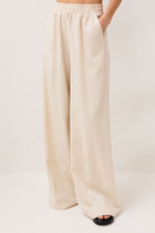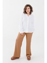 Стильные женские брючки на поясе с завышенной линией талии. Модель прямого кроя, на поясе — молния с клепкой, по бокам вшита резинка, имеются два боковых кармана.