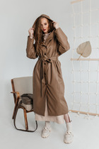 Утепленный плащ прямого силуэта. Подобная верхняя одежда теплая, но в то же время не громоздкая, а значит отменно сидит на фигуре. Центральная застежка на металлической молнии (светлый никель, №8), карманы накладные с отделочным клапаном. Воротник из отделочной ткани. Рукава с эластичными манжетами. Утеплитель холкон (см.описание), плотность 100.