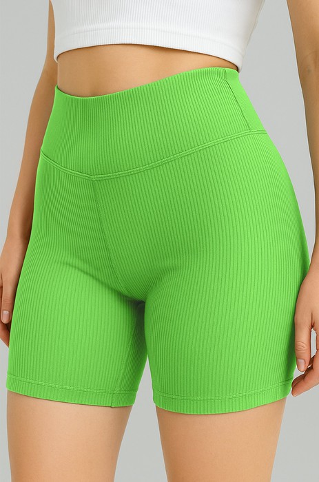 Широкая эластичная резинка нежно прилегает и не сдавливает живот. Благодаря облегающему крою лаймовые велосипедки в рубчик повторяют каждое движение тела.
