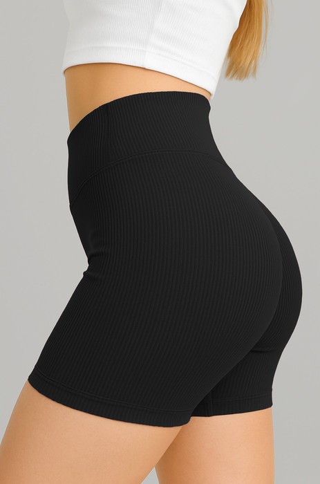 Широкая эластичная резинка нежно прилегает и не сдавливает живот. Благодаря облегающему крою черные велосипедки в рубчик повторяют каждое движение тела.