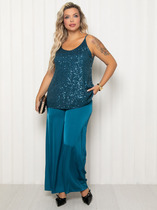 Свободные женские брюки с боковыми карманами из плотного гладкого трикотажа интерлок. Застегиваются на молнию и кнопку. Низ обработан плоскими швами.