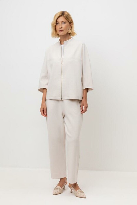 Брюки из высококачественного трикотажного полотна. За счет фактуры переплетения и специальных обработок сохраняют силуэт и форму. Хлопок в составе добавляет комфорт при носке. Эластичный пояс регулируемый шнуром обеспечивает идеальную посадку. В сочетании с жакетом из этой коллекции вы создадите расслабленный образ для летних дней.