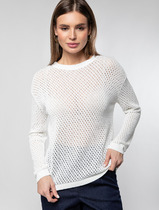 Джемпер в стиле прямой футболки, воротником-стойкой и короткими рукавами. Прямой силуэт, стандартная длина. Средняя плотность вязания, пластичная фактура. Выполнен гладью из мягкой полушерстяной пряжи. Шерсть в составе сохраняет тепло, а благодаря волокнам акрила изделие мягкое и дольше сохраняет форму.