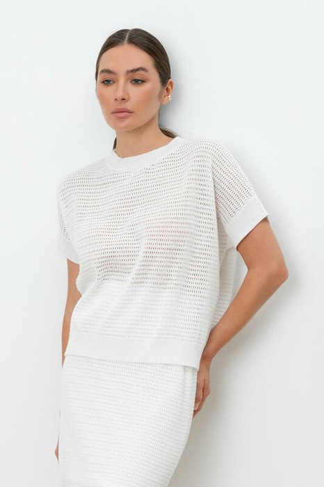 Укороченный вязаный ажурный джемпер. Состав 50% хлопок, 50% акрил. Благодаря акрилу в составе изделие не пилингуется.