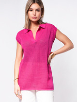Воздушное поло ажурной вязки из итальянского хлопка. Мягкий воротник без застежки в стиле поло и спущенная линия плеча добавляет легкости при создании летних образов.