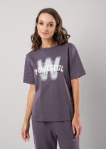Vilatte Футболка из эластичного футера с авторским принтом D49.095 кофе_надпись