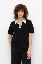 Джемпер поло с короткими рукавами из пике с V-образным вырезом и декоративной пуговицей.