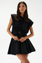 Джемпер поло с короткими рукавами с принтом и вязаным воротником из плотного гладкого трикотажа интерлок с застежкой на молнию . Спущенное плечо придает изделию свободный силуэт.