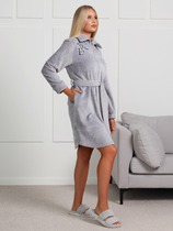 Уютный легкий халат из набивного трикотажа на запах с длинными рукавами. В боковых швах два удобных кармана. С помощью пояса можно регулировать посадку и силуэт. Гладкий материал приятен к телу и позволяет коже дышать.